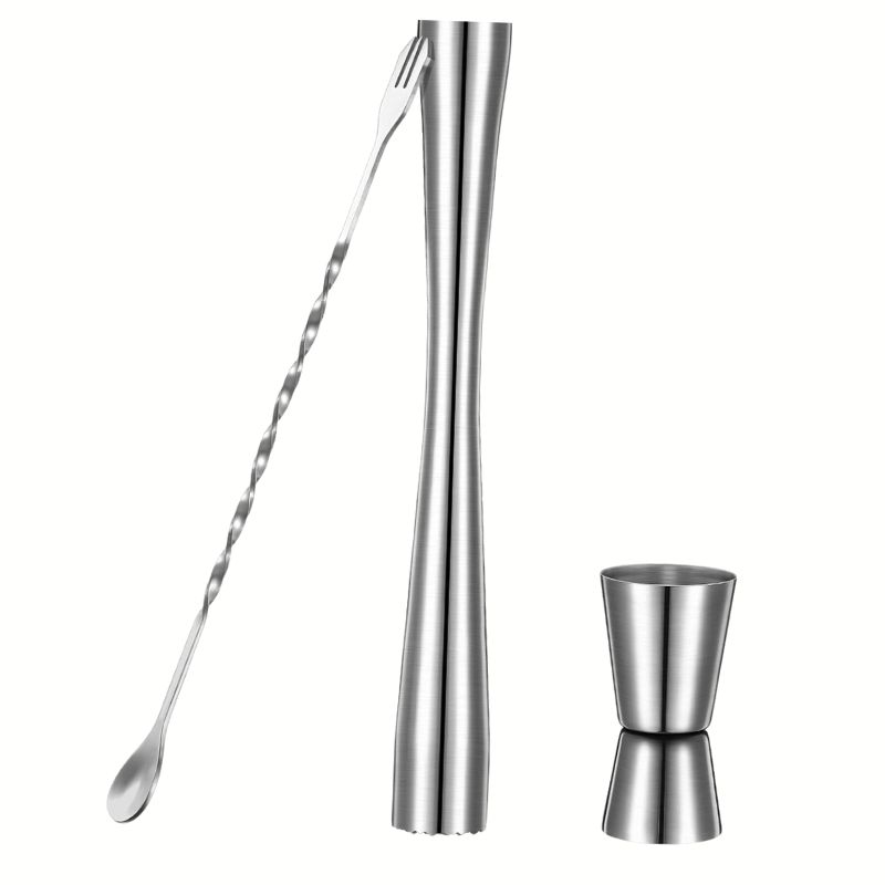 Set Accessoires de Bar en Acier Inox. – Pilon à Cocktail – Cuillère à Mélange – Doseur